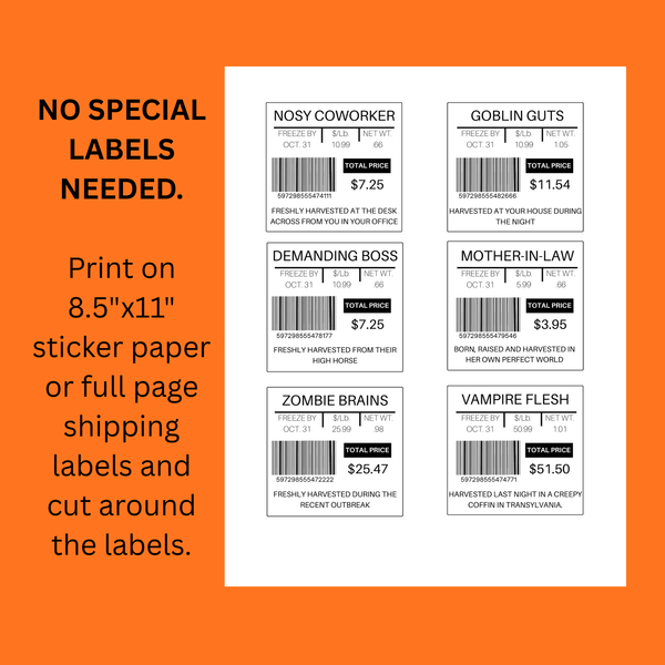 By using these printable fake meat stickers, you can create your own amazing Halloween party favors or Halloween decorations.