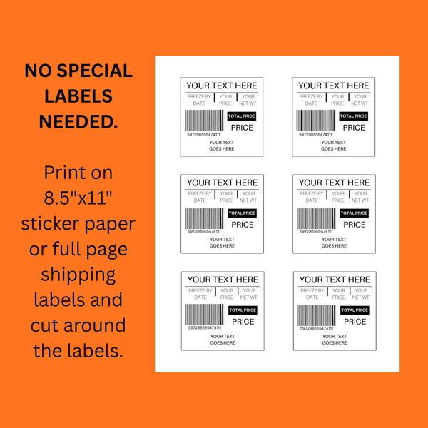 This is an editable Canva template that you can edit with a free Canva account and print these meat stickers yourself at home.
