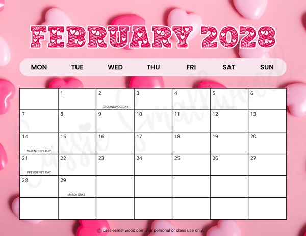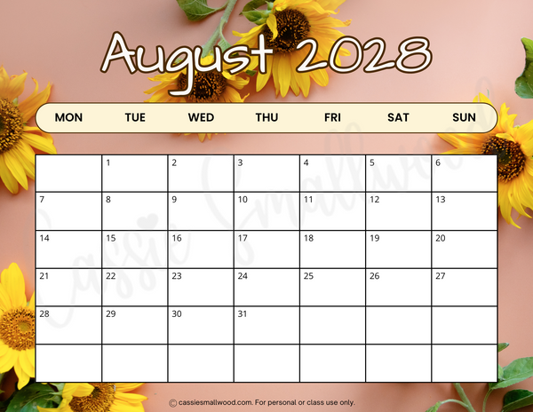 If you want a fun wall calendar to hang in your office, classroom or home, you're going to love this cute 2028 monthly calendar with holidays.