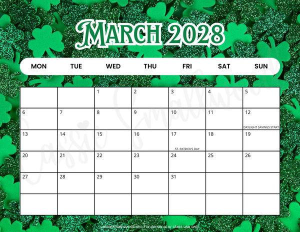 How To Download The Printable Monday Start 2028 Monthly Calendar With Holidays